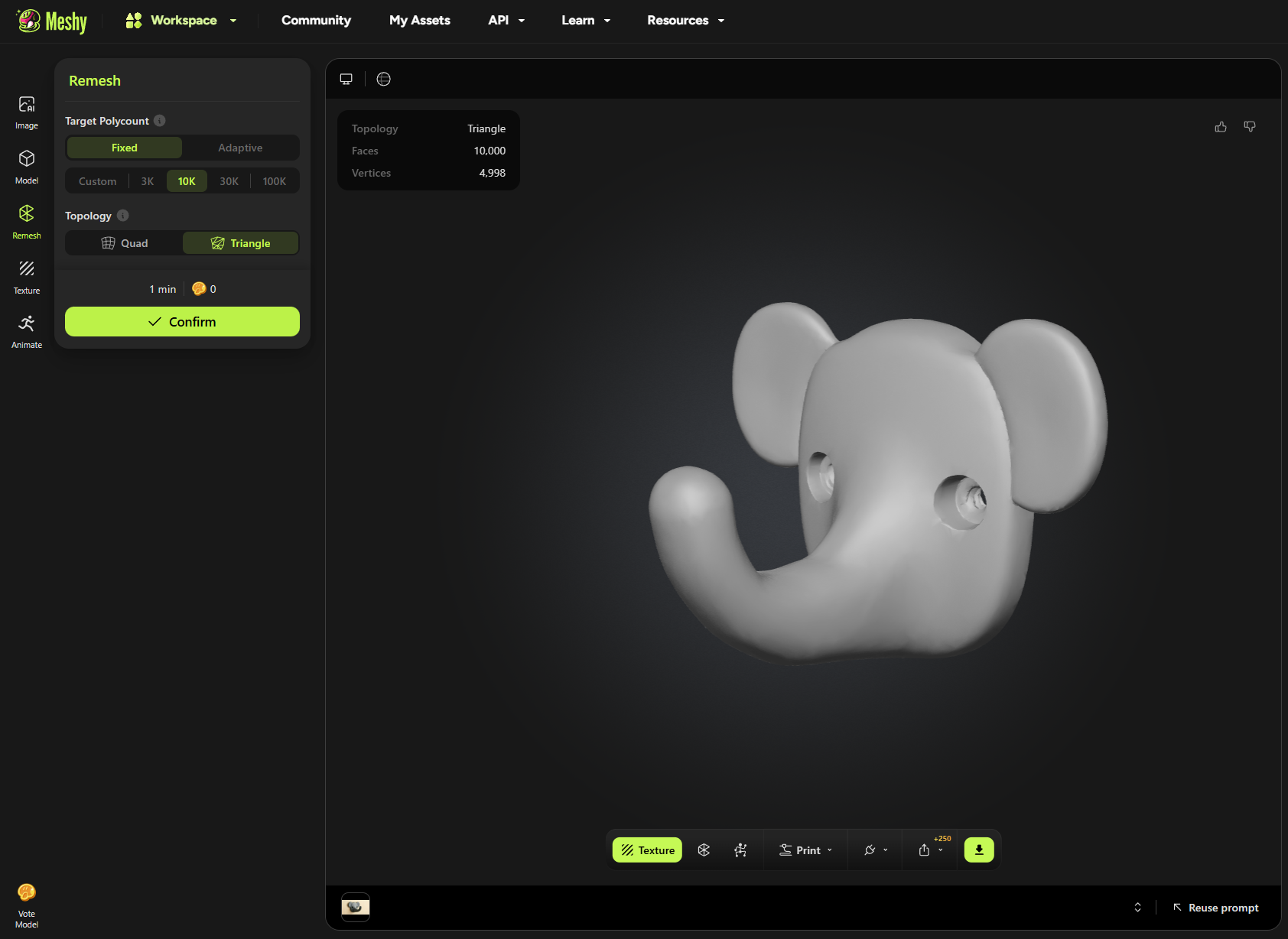 Upload the selected render to Meshy.ai and run the 2D Image to 3D Model process.