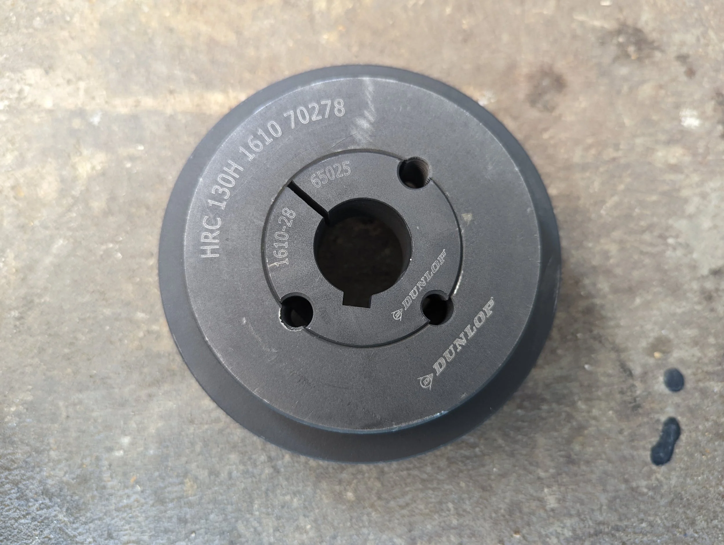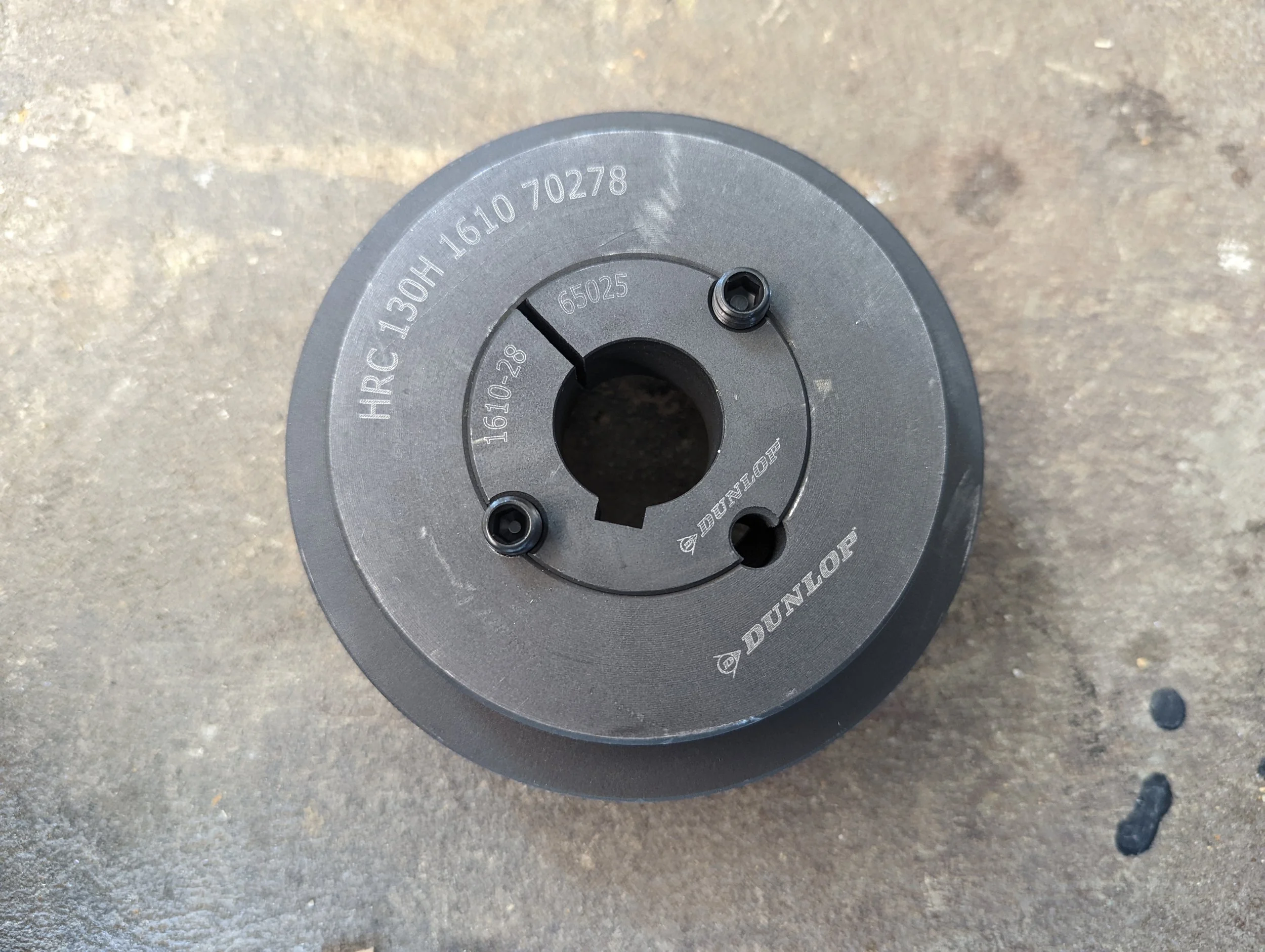 Now using the HRC 130H Coupling, place the 1610-28 Tapered Bushing inside the Coupling as shown.