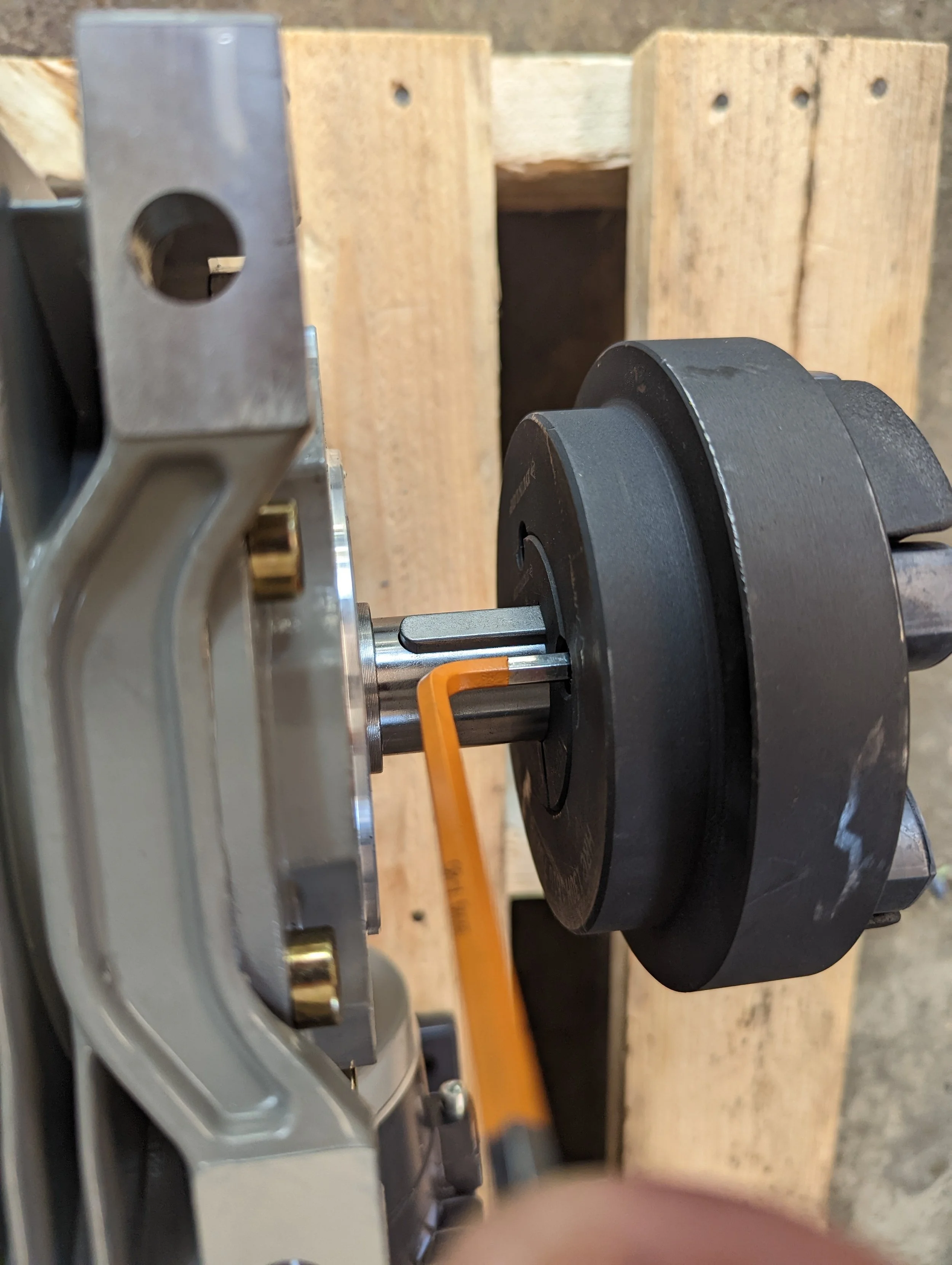 Then using the Grub Screws that came with the tapered Bushing, insert them as shown and tighten them up by hand as much as you can.