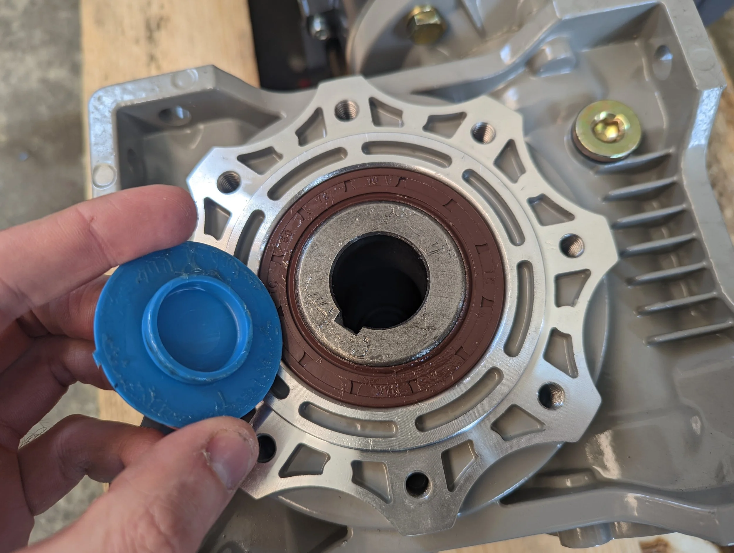 If you haven’t already, remove the plastic covers from both sides of the gearbox.