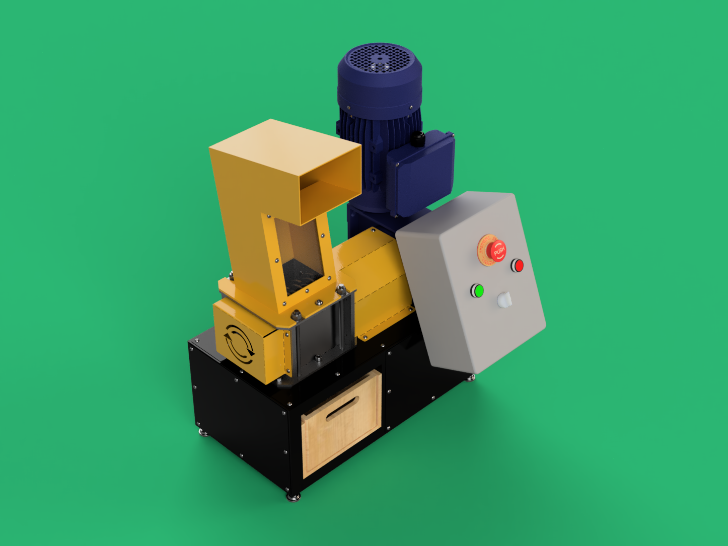 This machine might look friendly, but it works with strong forces to shred plastic, so don’t forget to make sure everyone operating the machine learns about its dangers and what precautions to take!