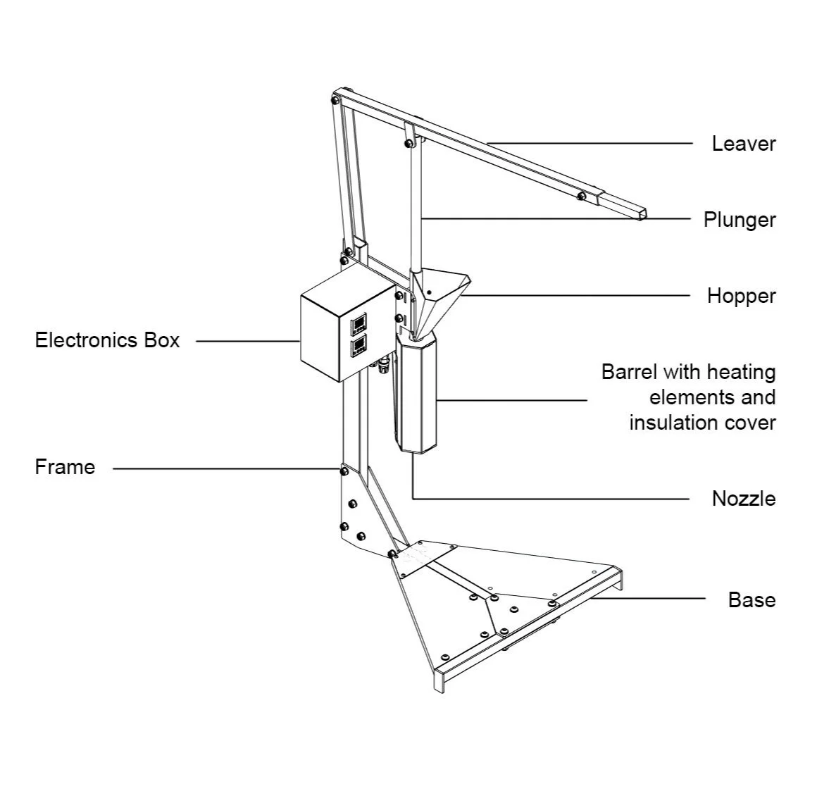Our injection machine works by taking fairly accessible and reliable components and building them into an easy to use and repairable machine that can easily be shipped to anywhere in the world in just two cardboard boxes.